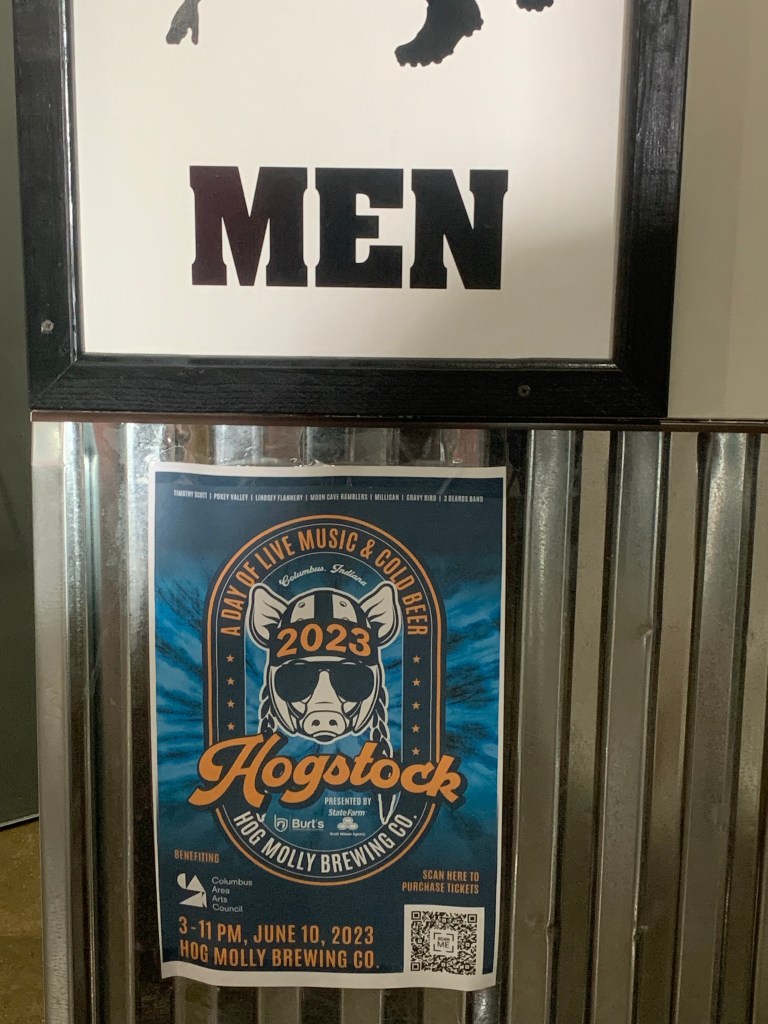 There were just so many people at the event, so I sat at a table inside and listened to the music, and just watched people having a good time. I met a lot of really cool people, and the beer scene is very active in Bartholomew County. It was a diverse crowd, and there was positive energy all over including in the side yard where people were playing a Hog Molly cornhole set. The location in a business complex on Columbus’s Northside is a perfect place for Hogstock, and there was ample parking and lots of room for this excellent party. And when I go next year, I’ll make sure to bring my own chairs!